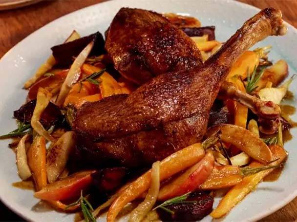 Gänsekeulen mit gebratenen Babykarotten
