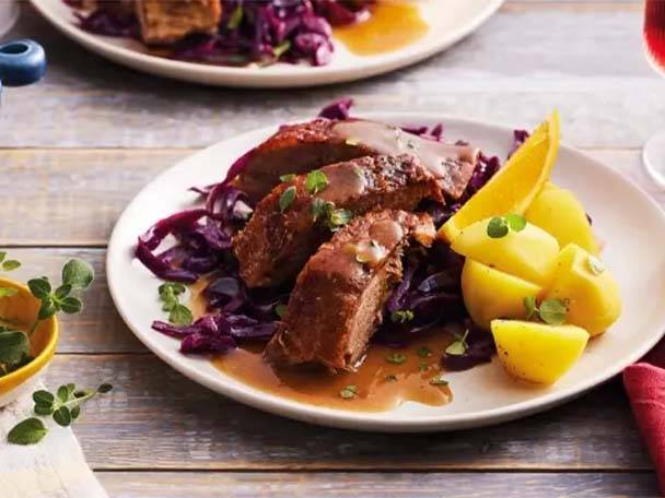 Gans in Orangensauce an Honigkartoffeln